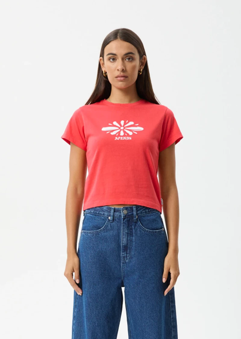 Introducing the ‘Dash’ baby tee from Afends. It’s flattering slim fit and printed artwork makes it a versatile addition to any wardrobe. This baby tee is made with recycled cotton and cotton jersey offering a soft and breathable feel.