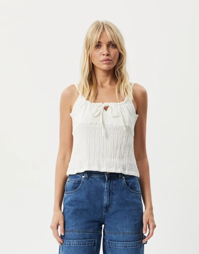 Keep calm and cami on in this lightweight and textured design. Breeze through the seasons in a breathable hemp and tencel seersucker material.