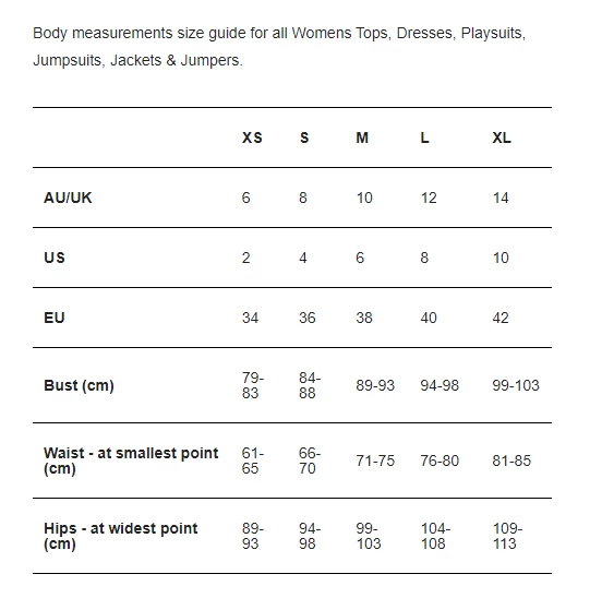 Model wears a size S / AU 8 / US 4 and is 178cm tall.