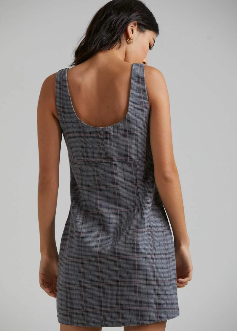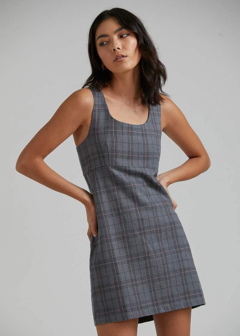 This slim-fitting silhouette has a square neckline, under bust seam and invisible side zip entry for easy wearing. Finished with our custom gunmetal check pattern, Romy is an ode to Afends punk roots. Team with your favourite hemp shirt and boots for colder days.