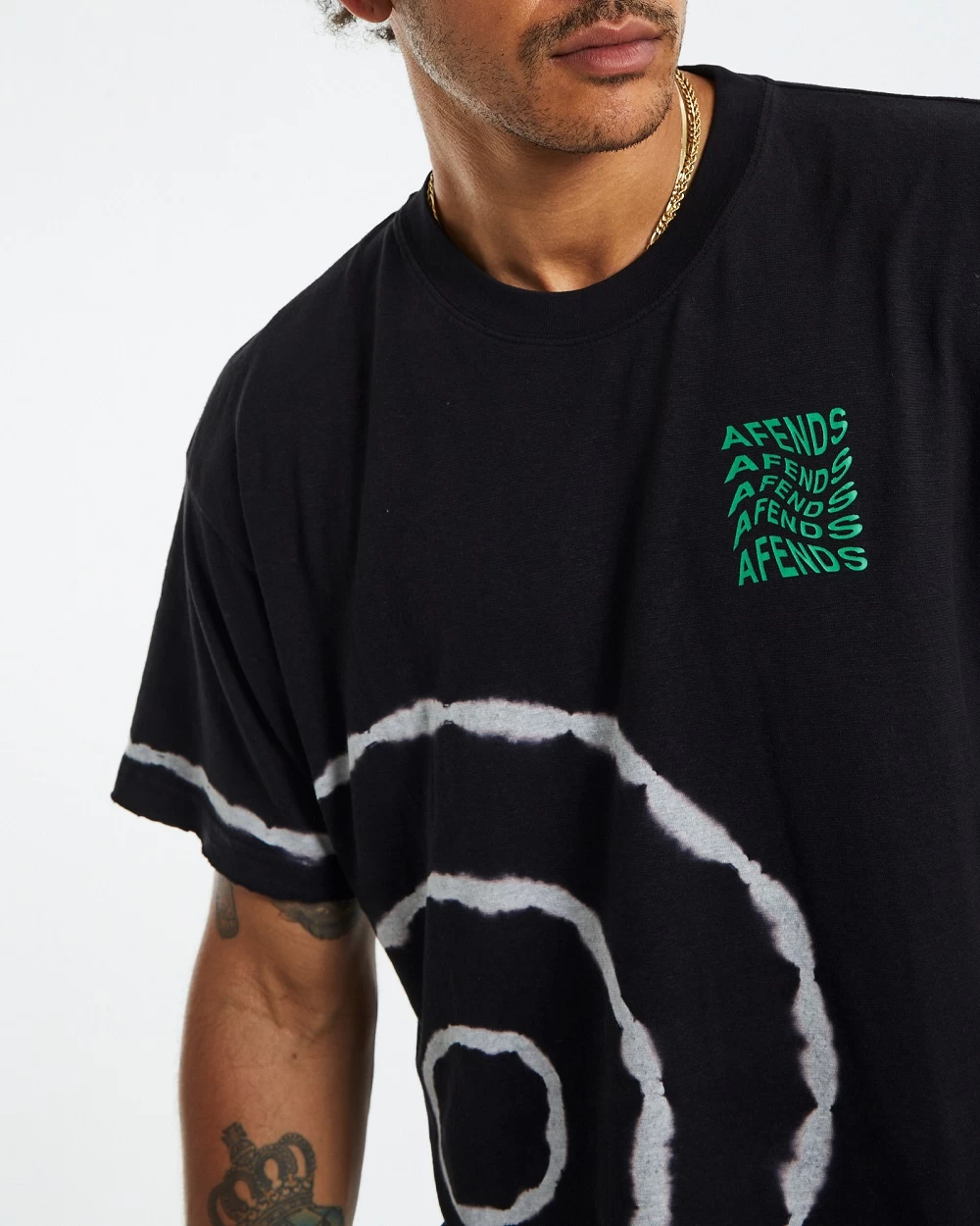 The Spiral Hemp Oversized T-Shirt by Afends comes in a black colourway with contrast graphic all over. Designed with a comfy oversized fit, ribbed crew neckline, short sleeves and finished off with a straight hemline. Throw it over baggy pants and sneakers for a kitted out look.