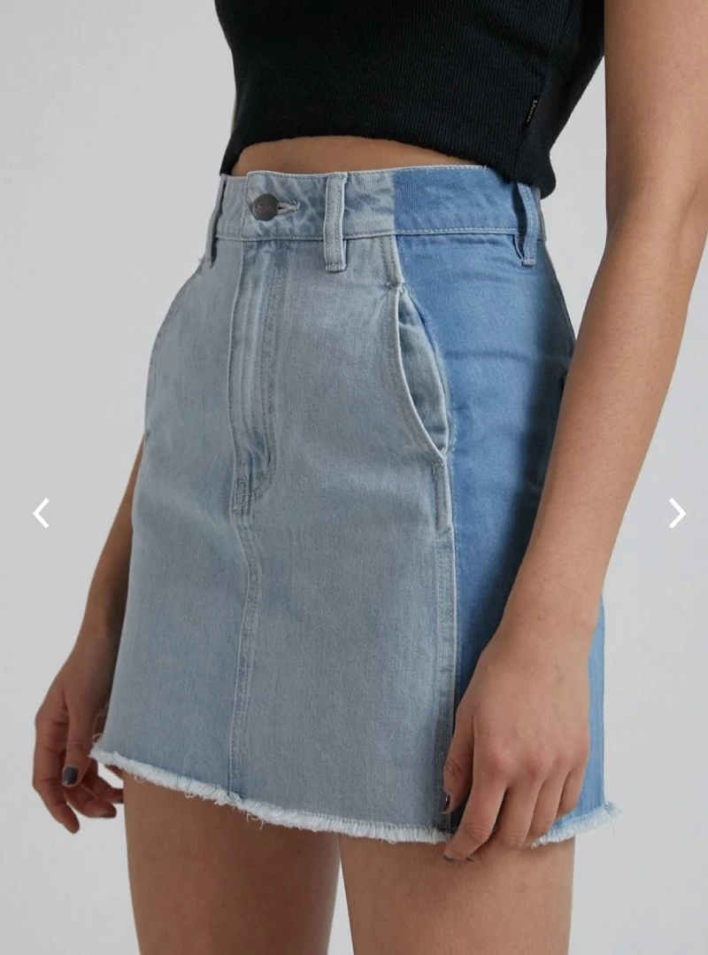 A modern style with a vintage twist, Stevie offers a fitted flattering silhouette with a raw frayed hem. Featuring a YKK zip and fly with button fastening, belt-looped waist, signature Afends paper patch on the waist and four pocket styling. With classic blue panelling down the sides, this is a versatile mini that will go with everything in your wardrobe.