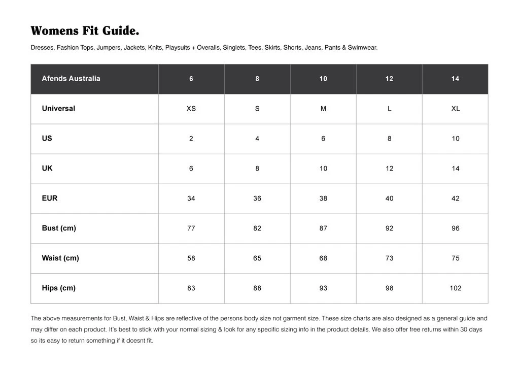 Afends studio model Bridget wears a size 26 / AU 8 / US 4
