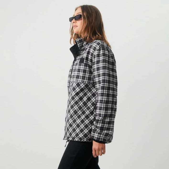 Afends Asta Unisex Hemp Reversible Jacket – Black + Black & White Check.