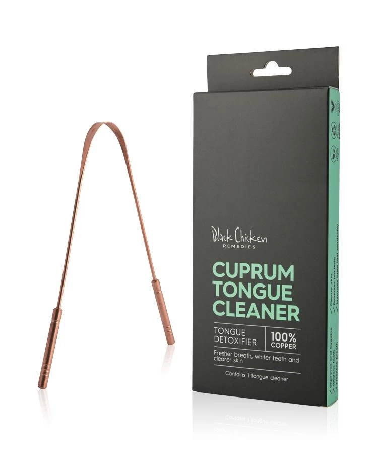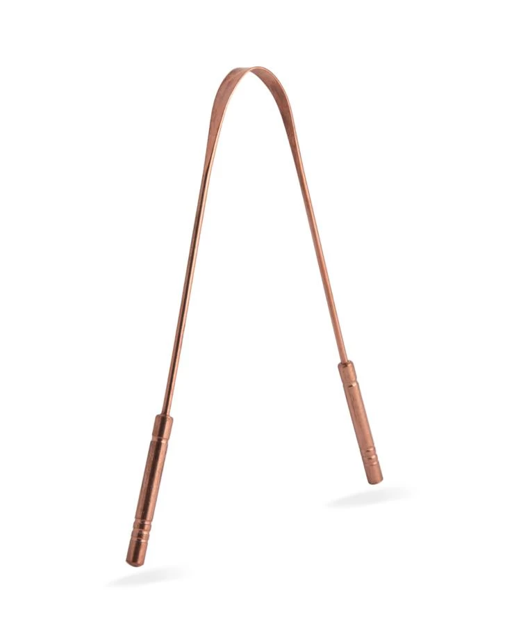 The Cuprum Tongue cleaner- or tongue scraper is 100% pure copper, effective for removing oral bacteria from the tongue for fresher breath, whiter teeth and clearer skin.