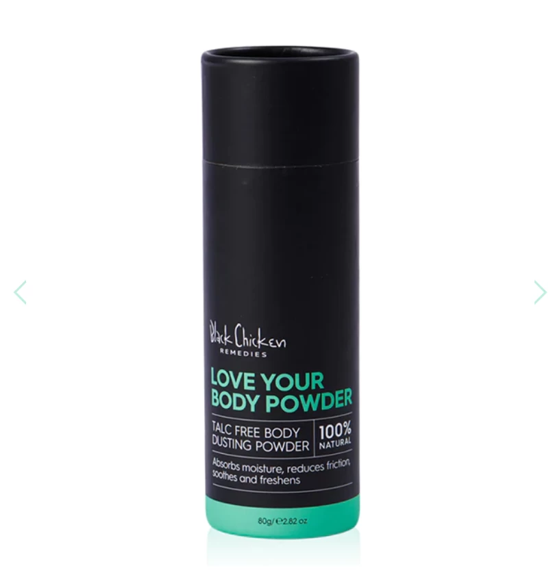 Love Your Body Powder is suitable for a variety of areas where skin irritations can occur like where you tend to sweat, or places that get chafed or blister easily, to minimise chafing and reduce sweating. This 100% natural body powder can be used before and after hair removal, after the shower, in sneakers to deodorise them or as a refresher during the day.