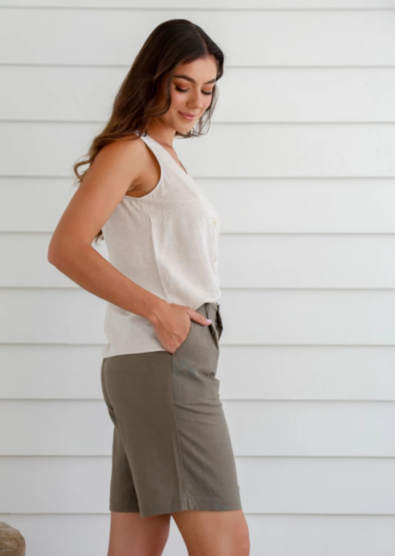 Ladies’ Hemp Rayon Shorts. Soft summer weight shorts with front and back pockets.