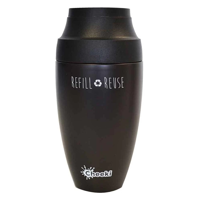 A triple insulated reusable coffee cup from Cheeki 350 ml with leak proof easy clean lid in a great range of colours.