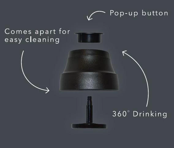 This 350ml (11.8oz) reusable coffee mug is built for on-the-go. Whether your first sip is in the car, campsite, kitchen or on your morning hike this double wall, vacuum insulated coffee mug will keep your coffee hot for 8 hours or your iced coffee cold for up to 12 hours. It’s on trend, one of a kind advanced technology features a leak-proof pop up lid enabling for 360 degrees ease of drinking. It’s single-mould base provides extra strength and durability, making it perfect for prams, and most cup holders in the car and at the gym. Simply disassemble for easy cleaning.