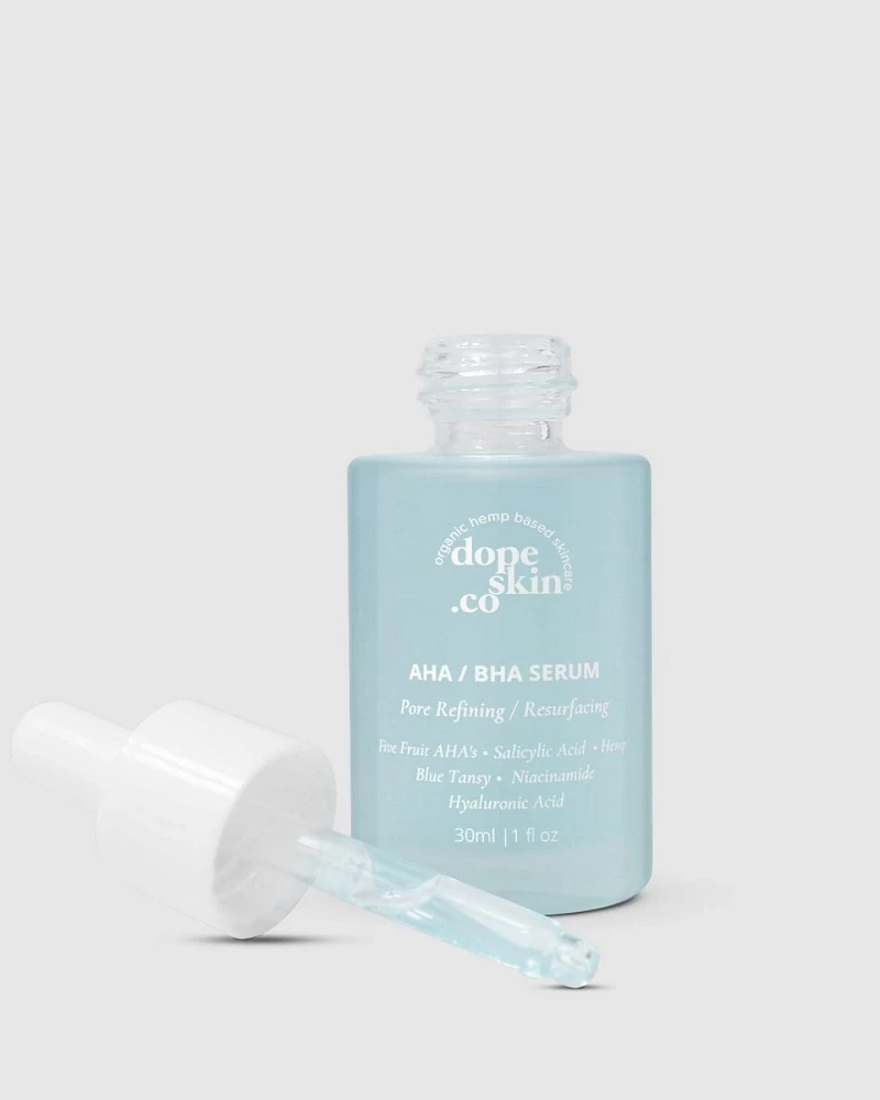 Formulated with Five Fruit AHA’s (Glycolic Acid, Citric Acid, Lactic Acid, Malic Acid & Tartaric Acid), BHA (Salicylic Acid) along with other hero ingredients such as Hemp, Hyaluronic Acid, Blue Tansy and Niacinamide (Vitamin B3).