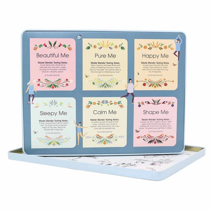 Gift set includes: Earl Grey, English Breakfast, Chamomile Lavender, Lemongrass, Citrus & Ginger, Super Berries and Intense Chai.