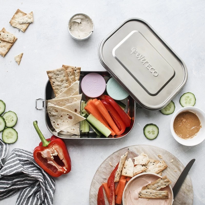 The Ever Eco Bento Box 2 compartment bento is a generously sized flexibile bento box. At 1400ml in capacity, it’s significantly larger than the original 580ml snack boxes in the same brand. This bento has a removable divider making this a flexi 2 compartment bento. Depending on what size you food is for the day, you simply move the slider to the position you need. You can also remove it compltely and have one single compartment.