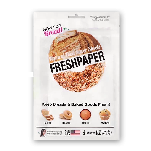 Great for cakes, biscuits, muffins, bread or any other fresh-from-the-bakery & homemade baked goods. Just pop a sheet of FreshPaper for Bread anywhere you normally store your baked goods to keep them fresher for longer! Remember to let air circulate for the product to work.