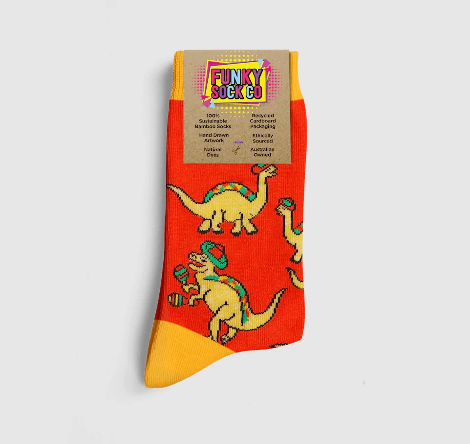 Funky Sock Co is different. Using ethical manufacturing, sustainable bamboo harvesting, recycled cardboard packaging, natural dyes and working with local artists to bring their artwork/dreams to life.