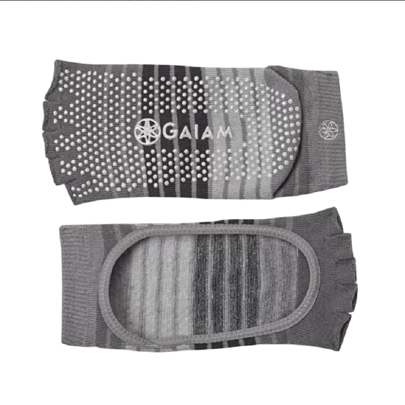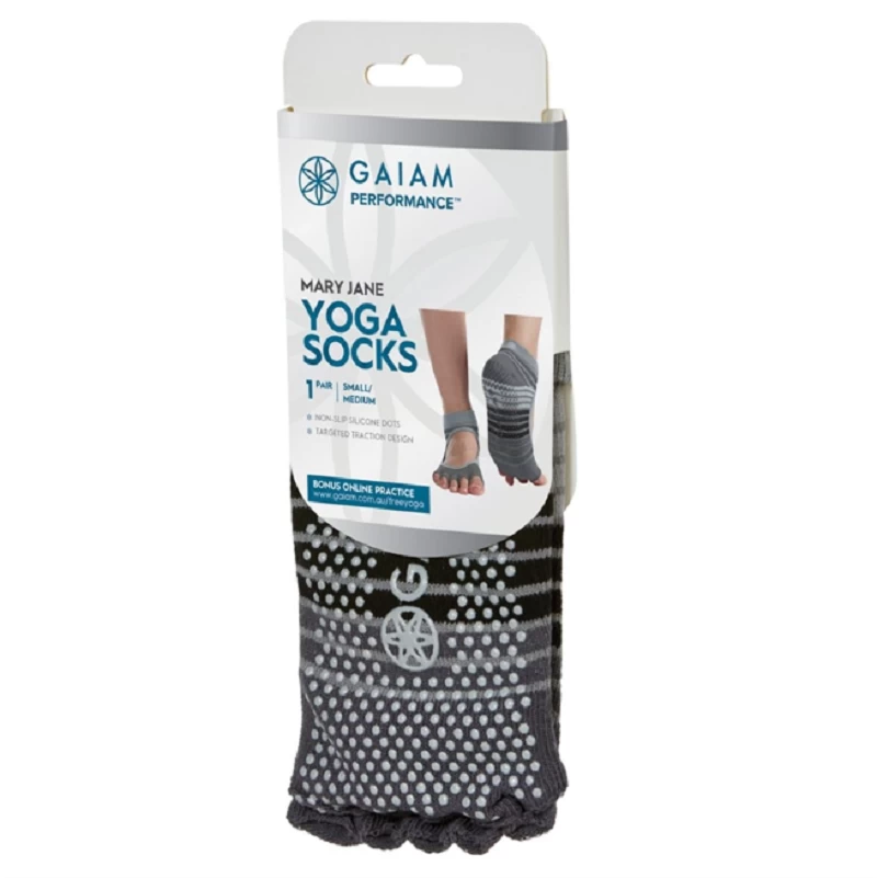 Gaiam’s Mary Jane Toeless Yoga Socks feature a ballet-inspired design and are perfect for yoga, Pilates, Barre, dance. The toeless construction allows the toes to move and spread naturally while the silicone grips provide a non-slip surface anytime, anywhere. Use with or without a mat to increase balance, comfort and stability.