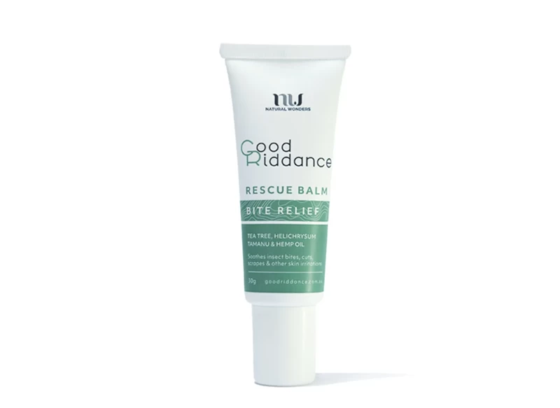 Good Riddance Rescue Balm is designed to soothe insect bites, cuts and other skin irritations. Rich in vitamin E and Tamanu oil.