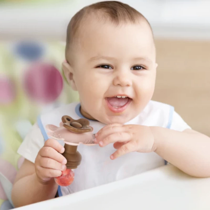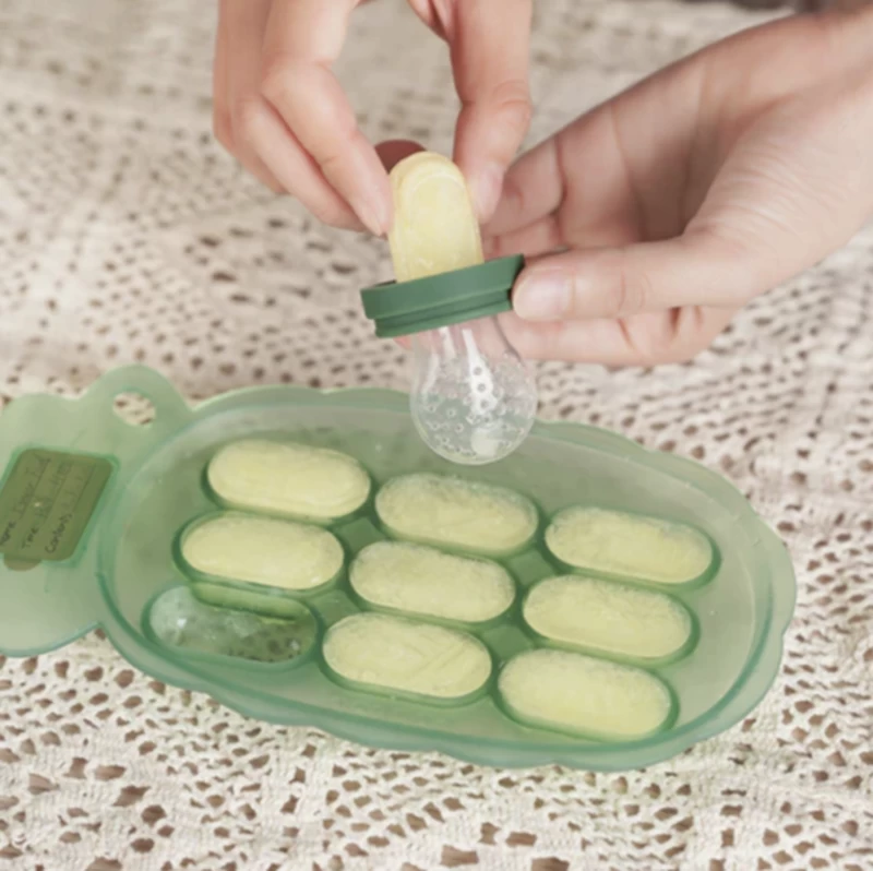 This Feeder is super easy to assemble and use! Simply place fruit, vegetables or meat into the silicone pouch and seal right. You can also freeze icy treats straight into our Feeder. To do this, simply slip over the leakproof pouch cover, pour liquid (such as breast milk or puréed food) into the pouch, assemble the Feeder, place the cap on and freeze! Once frozen, remove the pouch cover and let your little ones explore! They will enjoy having the ability to experience new tastes and textures while also building independence, learning to self-feed, and improving their hand-eye coordination and fine motor skills.