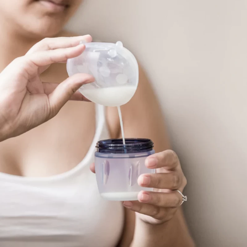The discreet, one-piece design attaches securely to your breast and collects any breast milk that would otherwise be lost in a nursing pad. It is completely portable and has small feet on the bottom that lets the Milk Collector stand upright on flat surfaces to prevent any spills after use. Once you have finished collecting your let-down, open the plug on the top and safely pour your milk into a container or bottle.