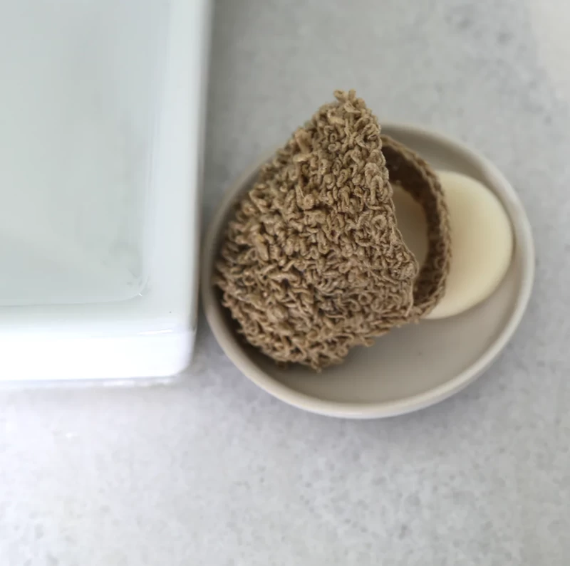 Sweet little personal scrubby, hand crocheted with lots of little loops to get the circulation going and lightly exfoliate the skin. Crocheted strap holds the scrubby on the hand.