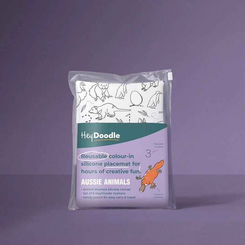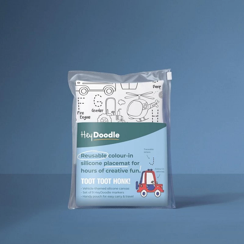 HeyDoodle Reusable colour-in silicone placemats for hours of doodling fun. Eco friendly and a great activity for the kids to enjoy and learn.