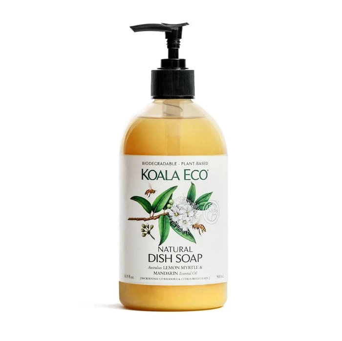 Koala Eco Lemon Myrtle & Mandarin Dish Soap cuts through grease and food residue leaving your dishes, pots and pans sparkling clean. This biodegradable and eco-friendly plant-derived formula effortlessly cleans, removes harmful food-borne bacteria and deodorises, without the need for toxic chemicals.
