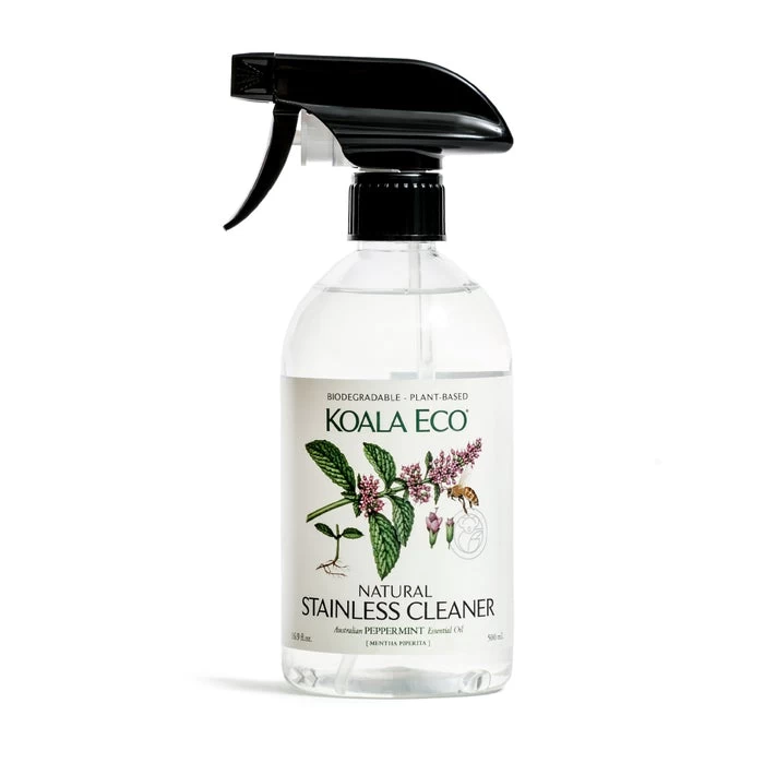 Koala Eco Peppermint Stainless Steel Cleaner polishes and protects your stainless steel and chrome-plated surfaces in the kitchen, bath and laundry area. This biodegradable and eco-friendly plant-based formula effortlessly cleans, removes bacteria and deodorises, without the need for toxic chemicals.