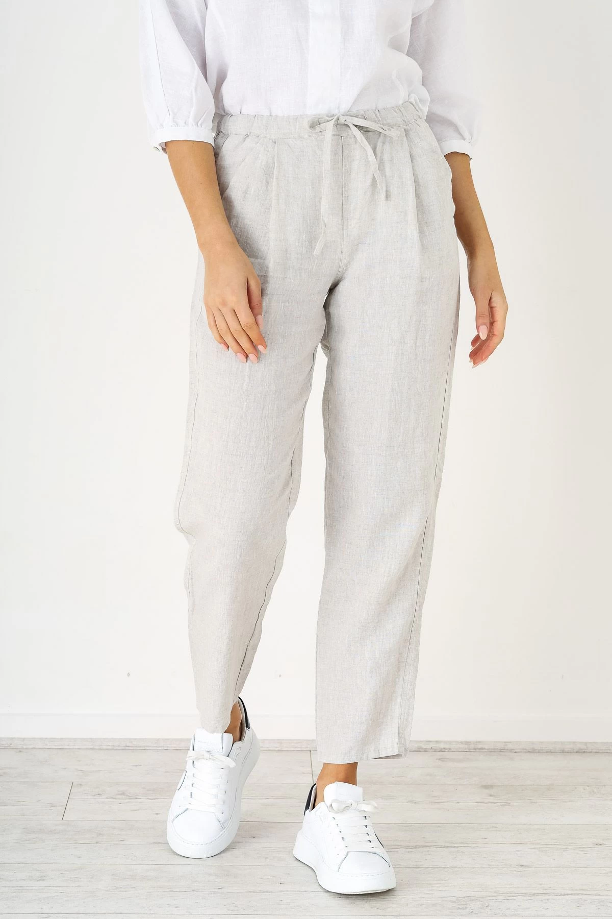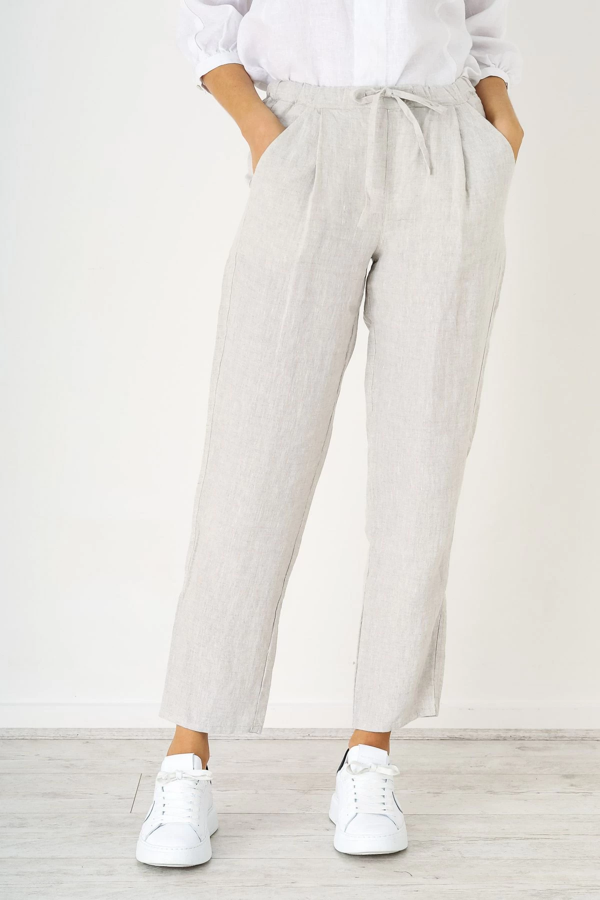 A classic cut linen pant, great for beach days, city strolls and everything in between. This casual style features front pleat detailing, elasticated waistband with drawstring, front side pockets, and a tapered leg. You will want to wear them every day.