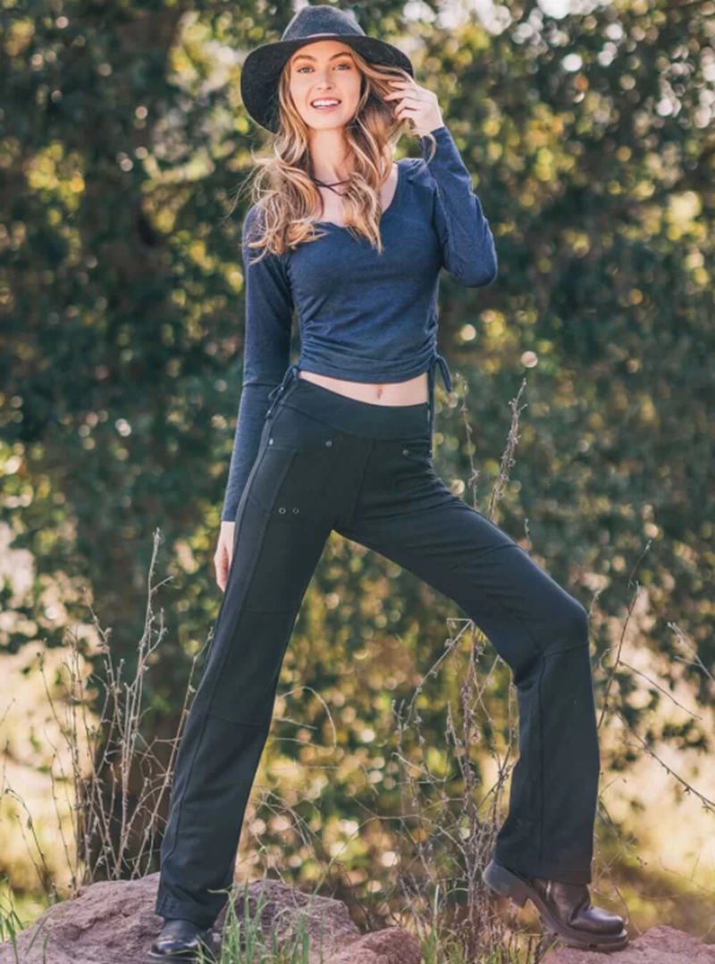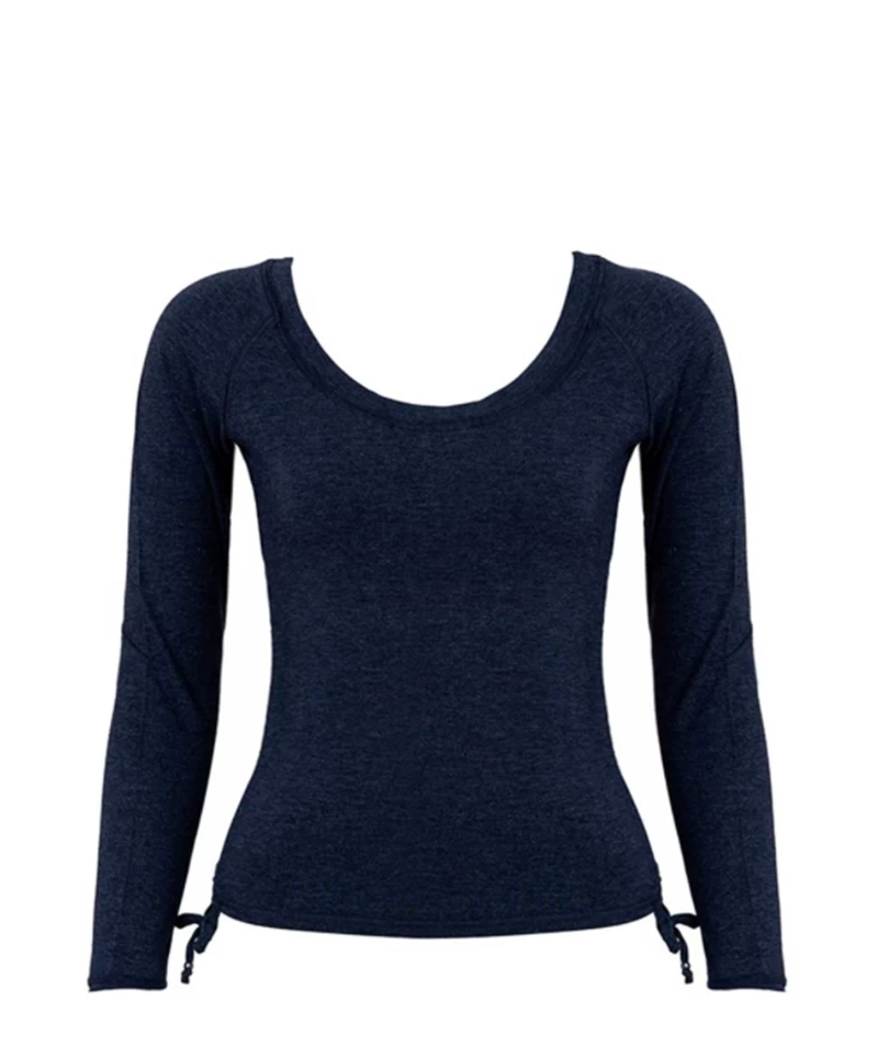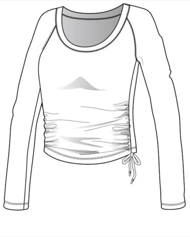 Shine on you crazy diamond in this cropped long sleeve tee in midweight bamboo and organic cotton melange. A scoop neck tee with adjustable ruching ties on both sides to let a little more, or a little less, of your inner sun shine. For ravers, pipers, seers of visions and those that howl at the moon.
