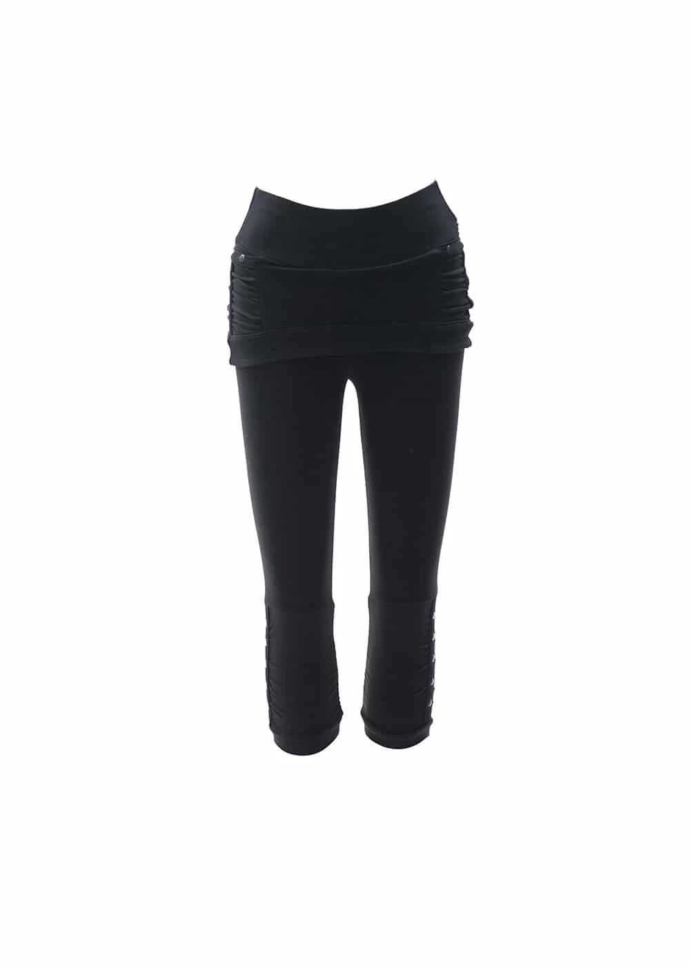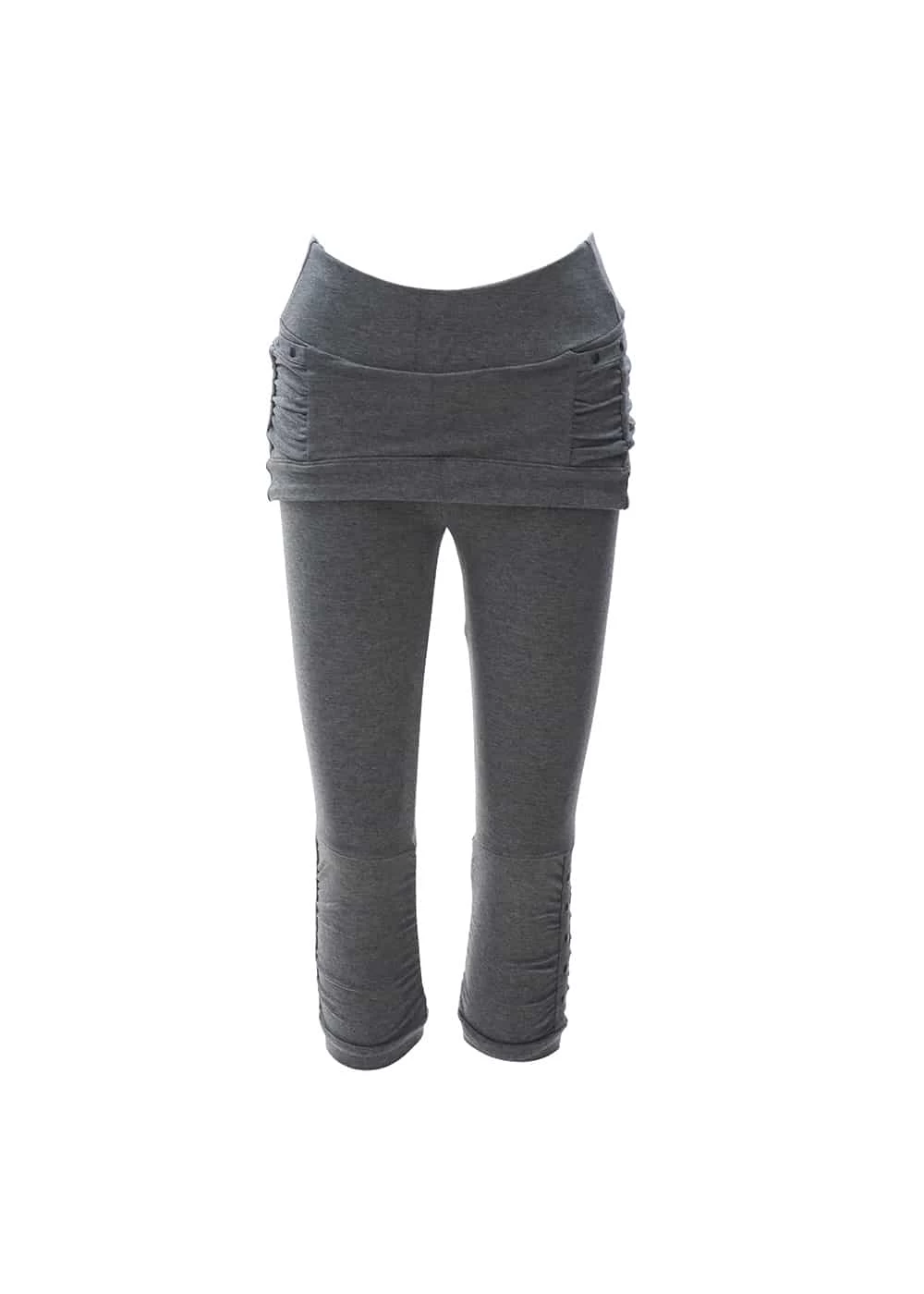 A classic Nomads leggings-with-a-skirt, this rebel with a cause item is a reboot of the best-selling Indica Leggings in thicker bamboo Melange. Same cut for the skirt, but rebuilt for extra pizazz. The leggings have lots of ruching down the calf, with four rivets, and the skirt has ruched side pockets that are perfect for all your bells and a couple of whistles.