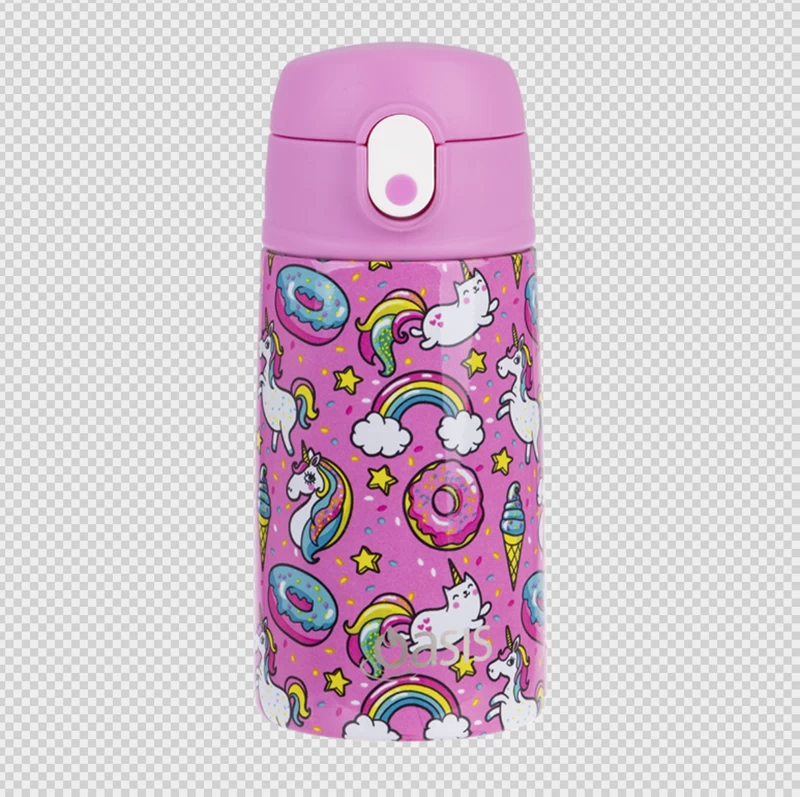Perfect for school, sport and other activities, the Stainless Steel Double Wall Insulated Kid’s Drink Bottle by Oasis features a flip lid with an easy to clean removable silicone sipper.