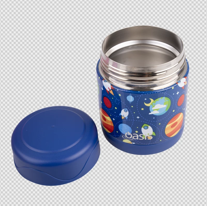 Oasis stainless steel double wall insulated kid’s food flask. These food flasks are BPA-free and come in a large variety of bright and cheery colours, making food fun for kids and grown-ups alike!