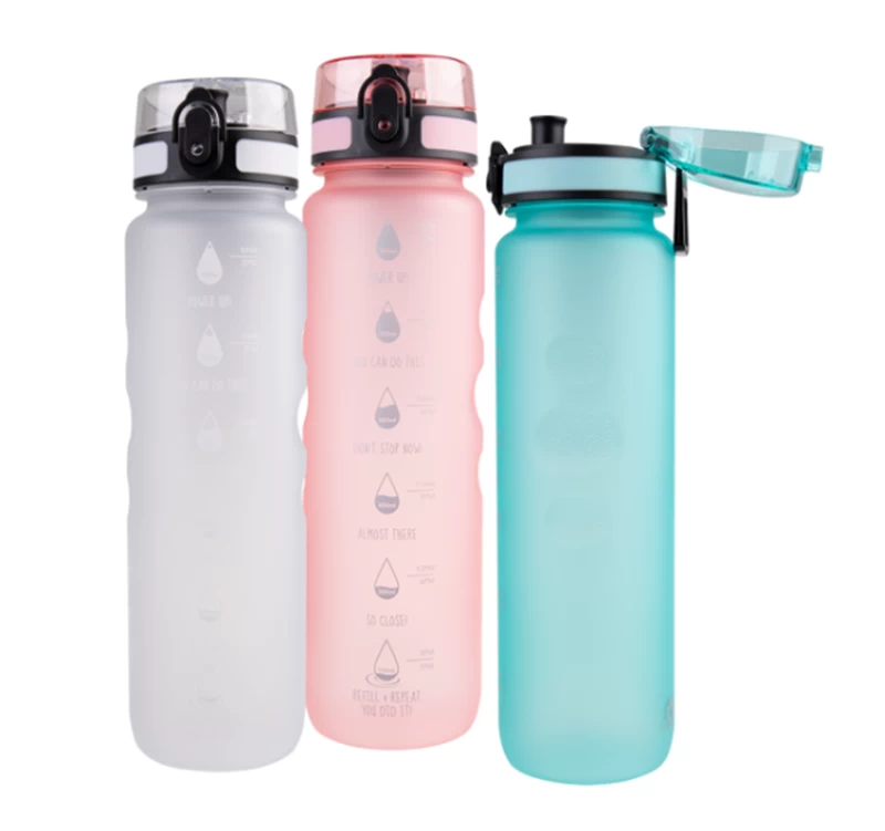 This sports bottle is easy to clean and features a leak-proof, one-touch open pour-through lid, carry clip, ergonomic textured bottle grip, and motivational time and capacity level markers to help you reach your daily hydration goals.