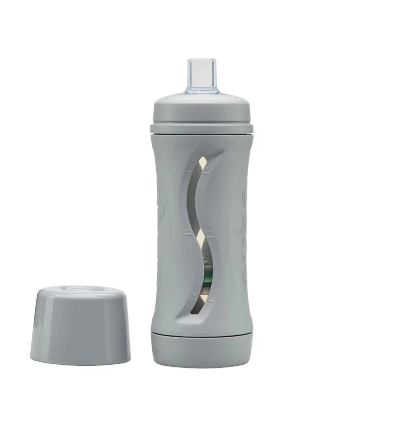Children as young as 6 months can easily sip the food from the soft silicon spout and watch as the platform automatically moves up the bottle! The viewing windows allows parents and children to see where the platform is telling them how much food it left inside.