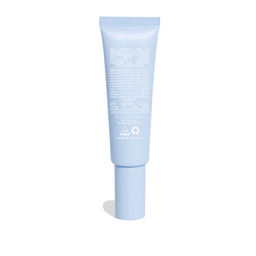 Wake up with Good Morning SPF 50 to help protect, restore and hydrate your skin while you focus on the fun stuff. Daily protection from the damaging effects of sunlight. With added Solanum Lycopersicum (Tomato Extract), Carnosine, Hyaluronic Acid, Simmondsia Chinensis (Jojoba) and Squalane.