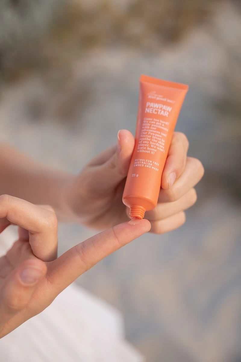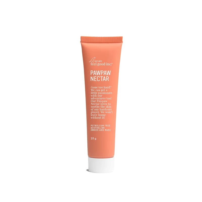 We Are Feel Good Inc Pawpaw nectar skin soothing gel is the perfect addition to your household medicine drawer or travel first aid kit. It works wonders on irritated skin caused from chapped lips, insect bites, wetsuit rash, minor burns and cracked heels. It’ll soothe the skin of any hardcore player.