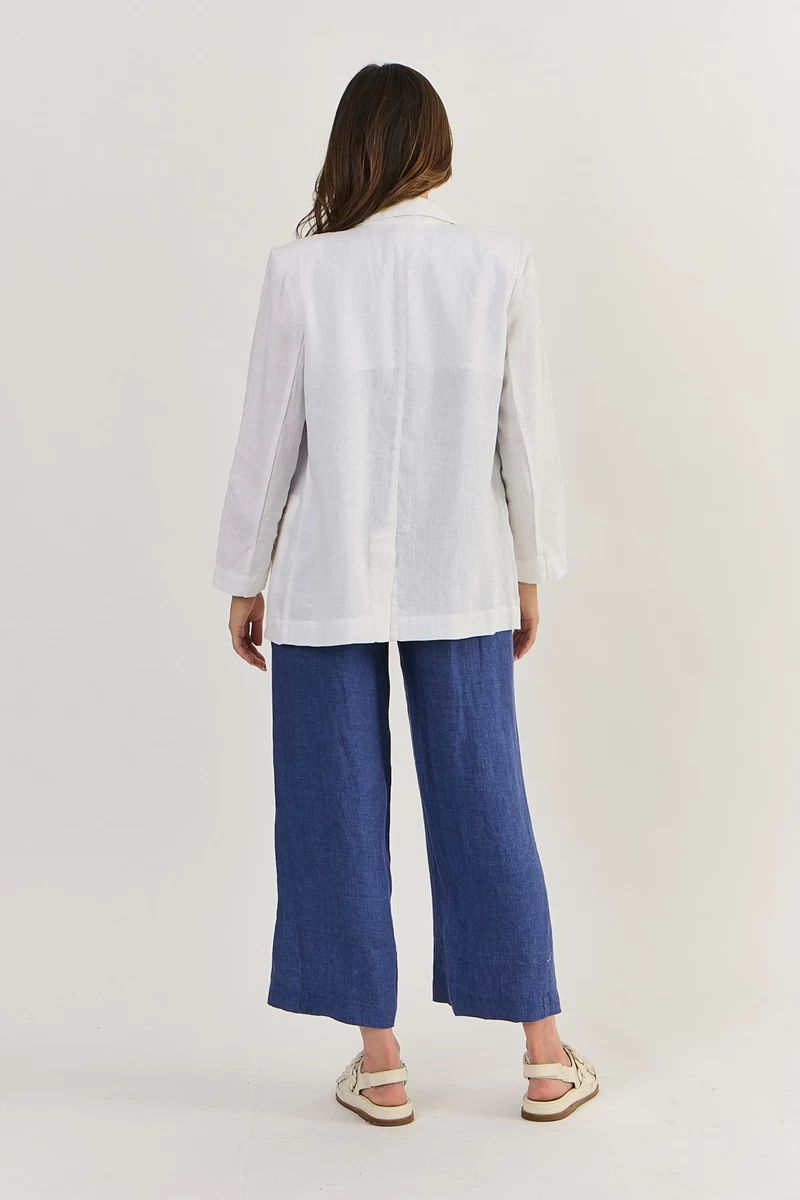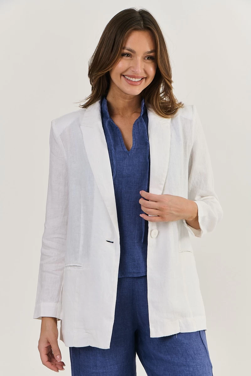 The GA505 is a classic linen jacket, wear it to the office or just out and about. Wide lapels taper to meet a large single button. Letting this jacket be worn closed or open. Roll up the full-length sleeves for a more casual look. Made from 100% linen. The model is 175cm tall and wears a size S equivalent to a size 10